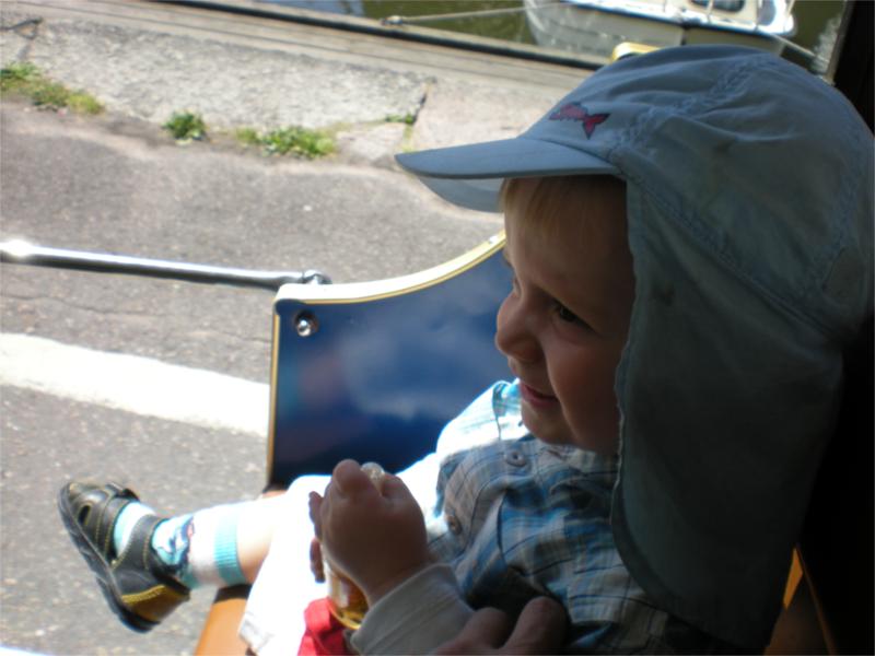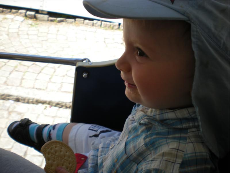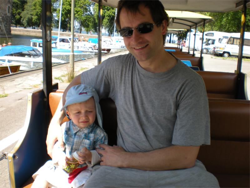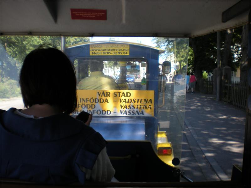 Det var så varmt inne i lägenheten att jag och S gick ut och promenerade lite. Och när vi kom till Slottet här i Vadstena, så stod det lilla tåget på plats, och skulle precis åka en runda, så vi passade på att hoppa på, och det var otroligt roligt för lille S ! :-)